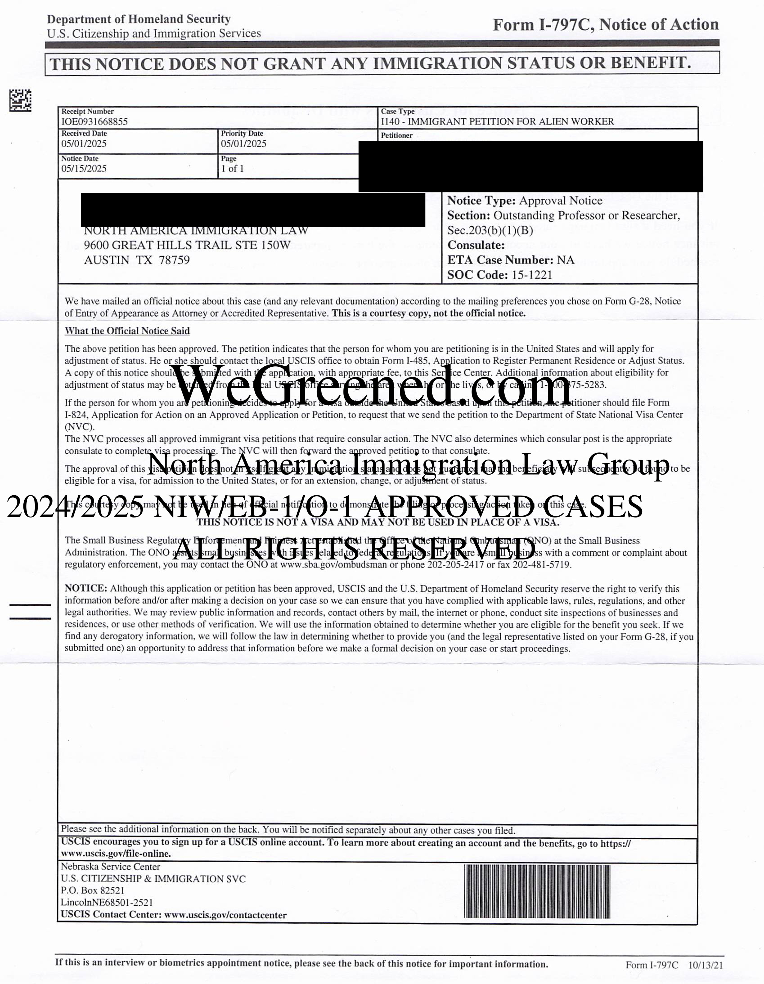 我们所累积的上万件I-140批准通知让我们对美国移民局的裁决趋势有着前所未有的洞察力